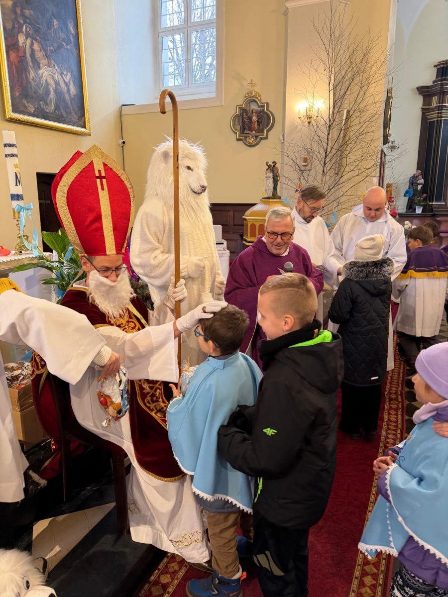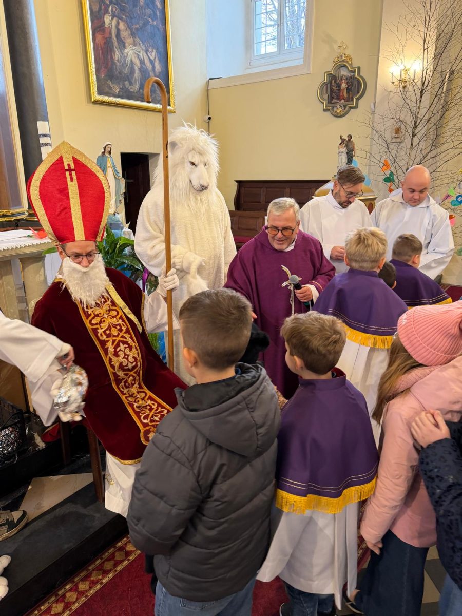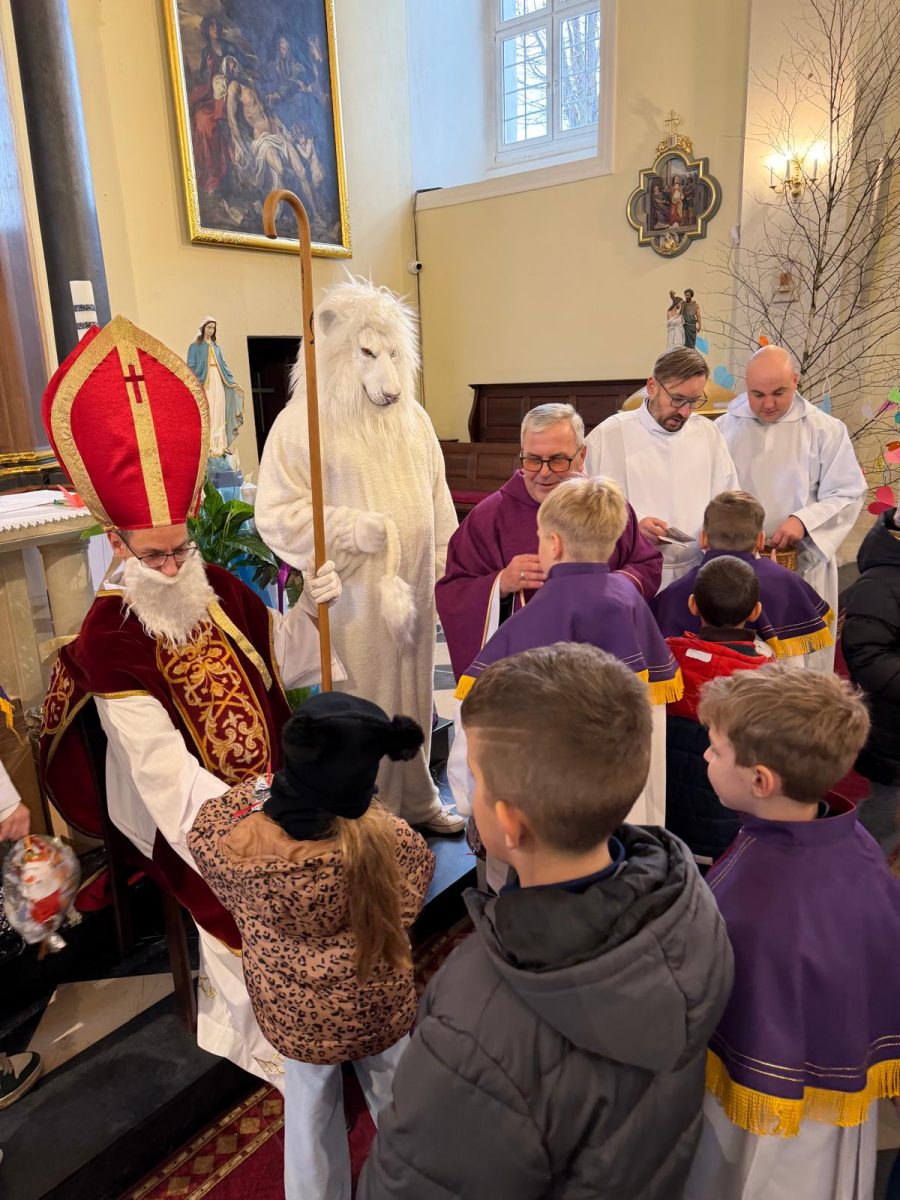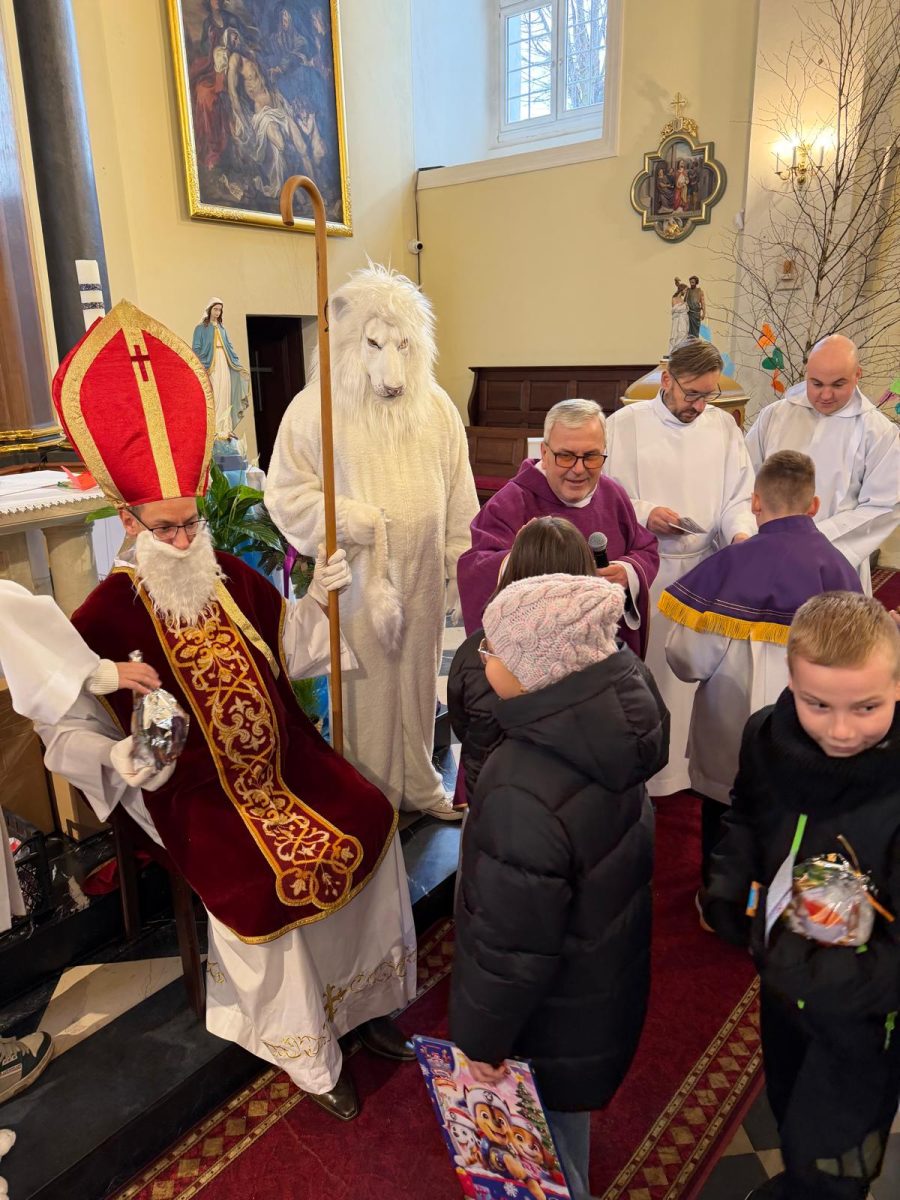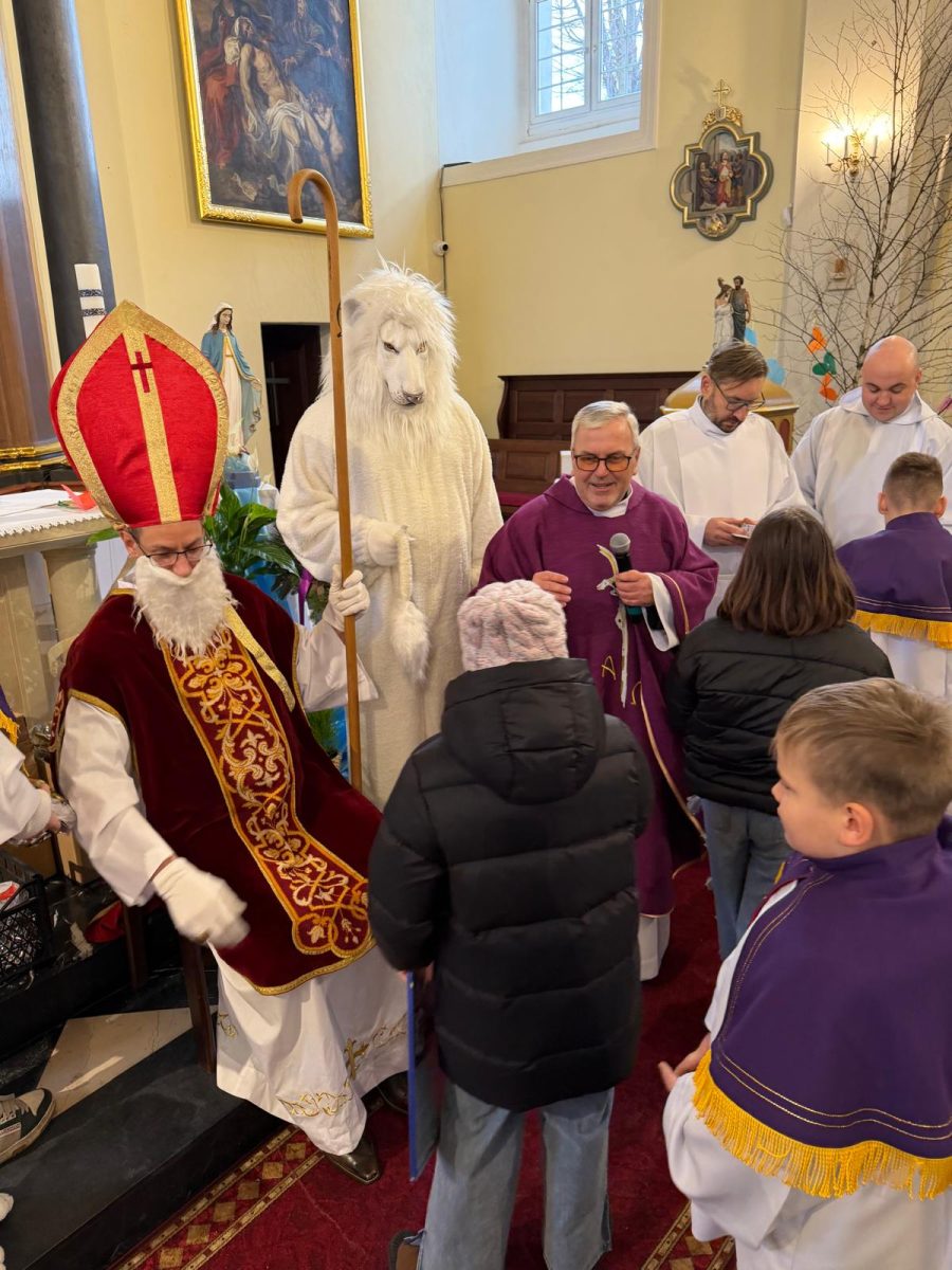 Podczas Mszy św. o godz. 10:00 odwiedzili nas Goście. Przyszedł Św. Mikołaj, a przyprowadził go Lew Leo, a był po niego z zaproszeniem do naszej parafii w Turcji. 07.12.2025 r.