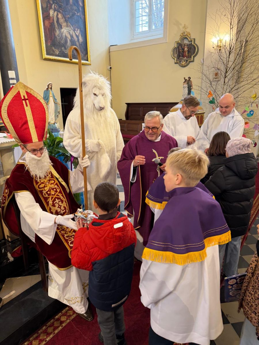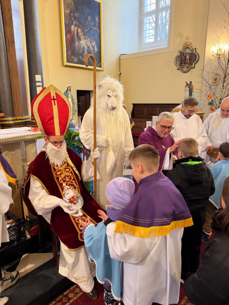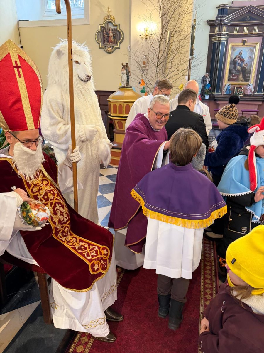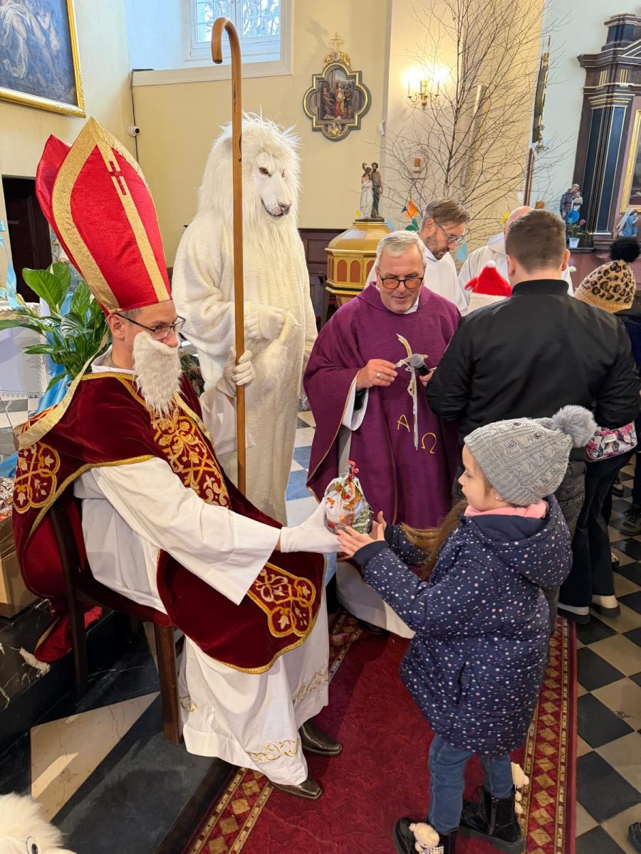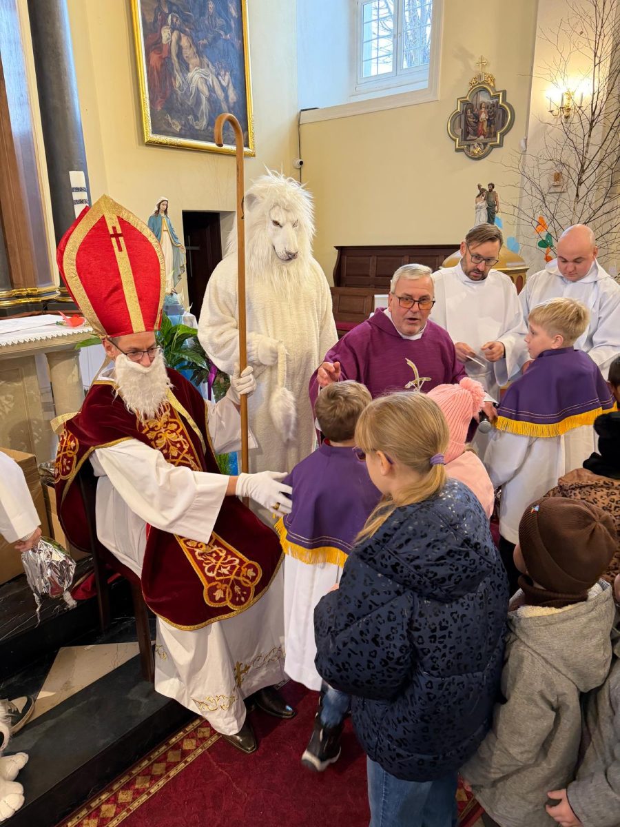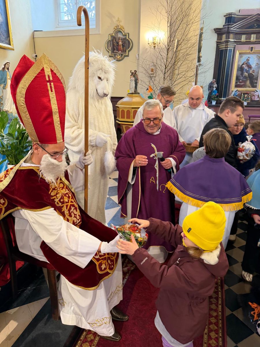 Podczas Mszy św. o godz. 10:00 odwiedzili nas Goście. Przyszedł Św. Mikołaj, a przyprowadził go Lew Leo, a był po niego z zaproszeniem do naszej parafii w Turcji. 07.12.2025 r.