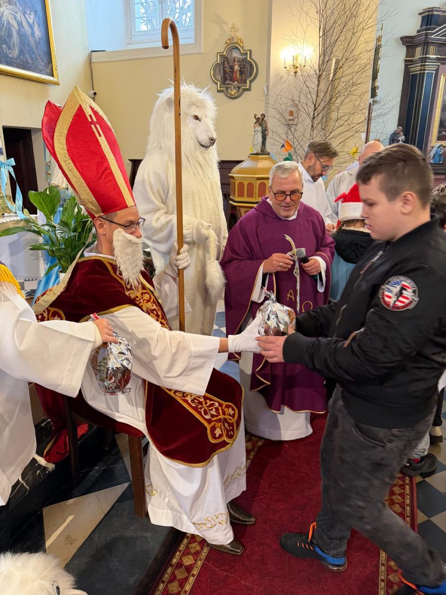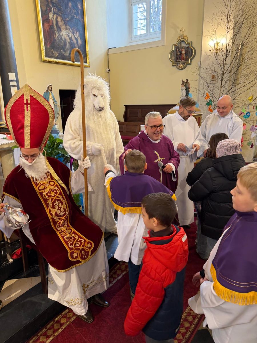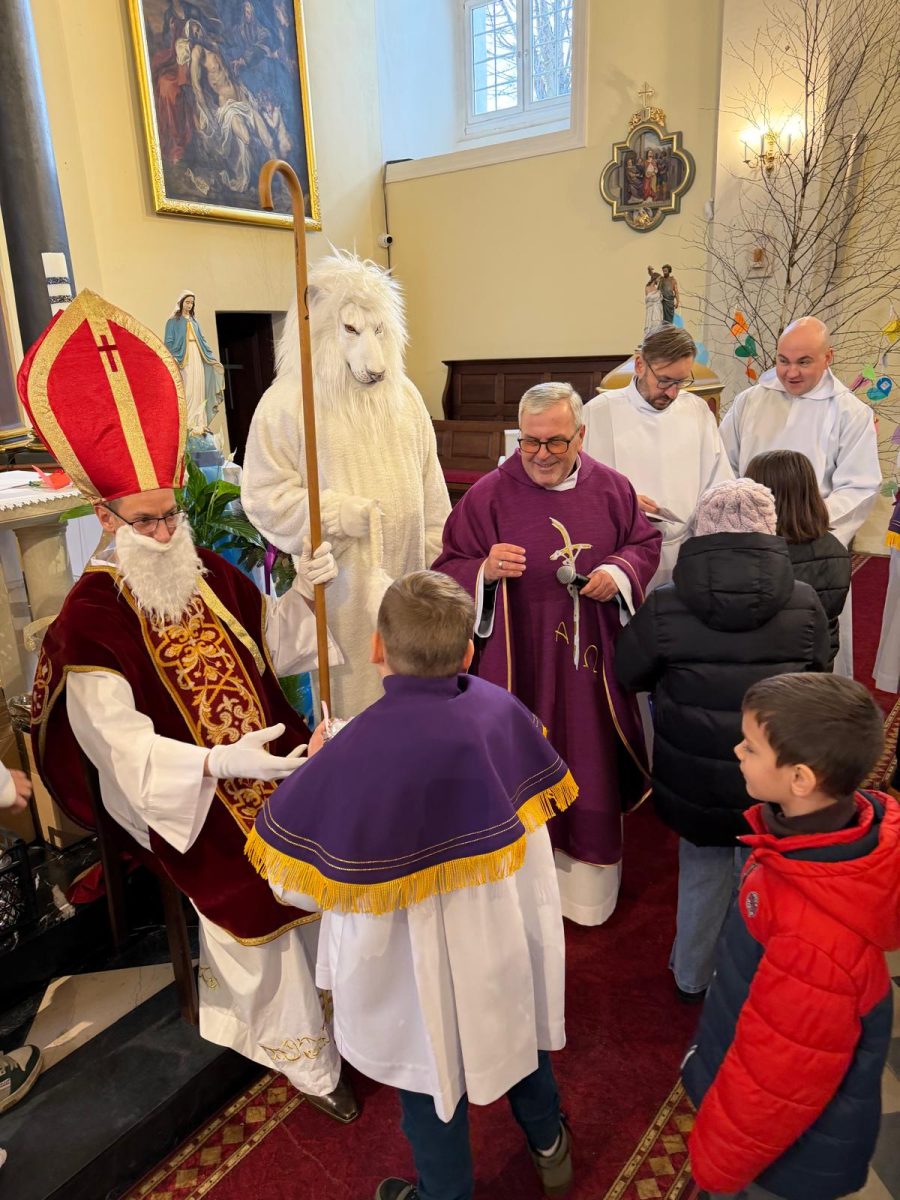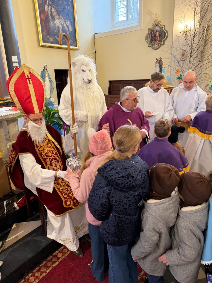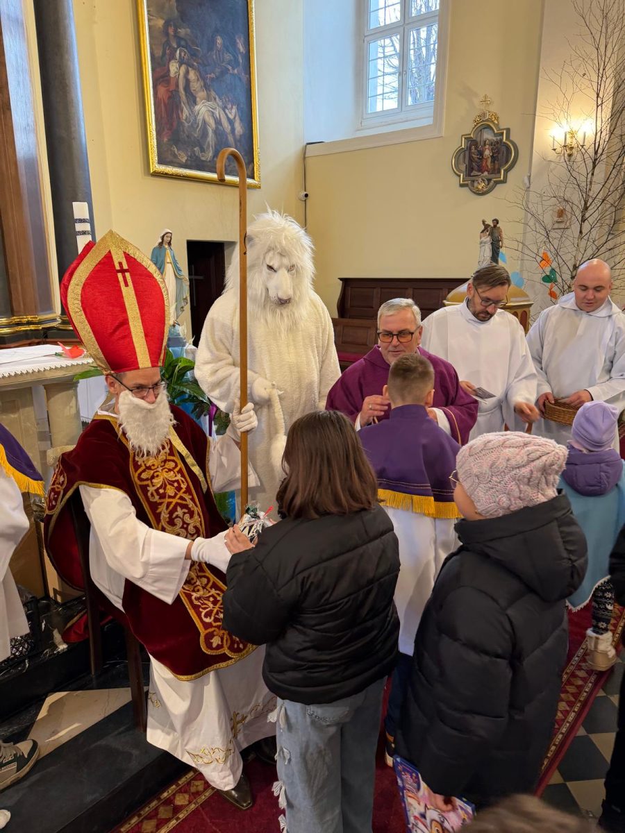Podczas Mszy św. o godz. 10:00 odwiedzili nas Goście. Przyszedł Św. Mikołaj, a przyprowadził go Lew Leo, a był po niego z zaproszeniem do naszej parafii w Turcji. 07.12.2025 r.