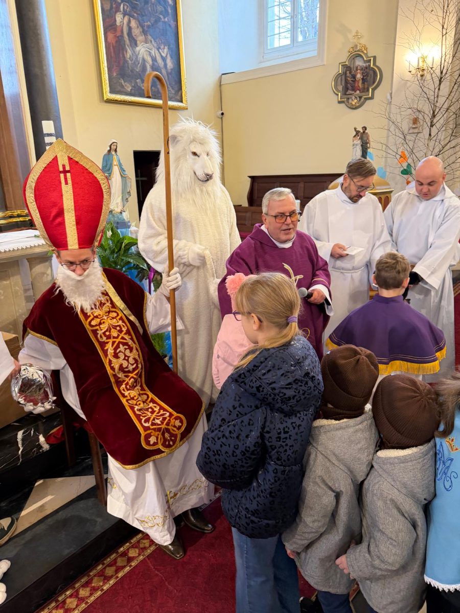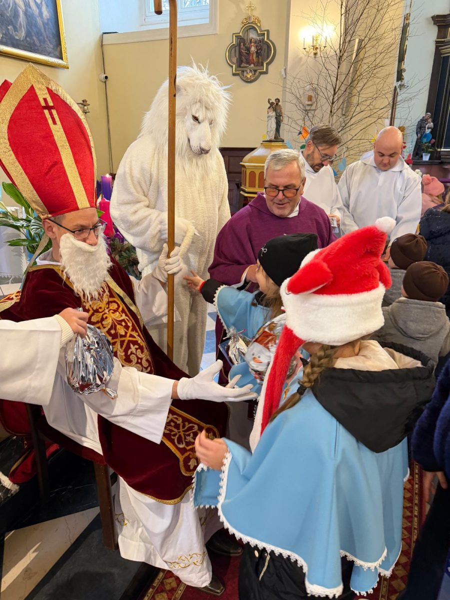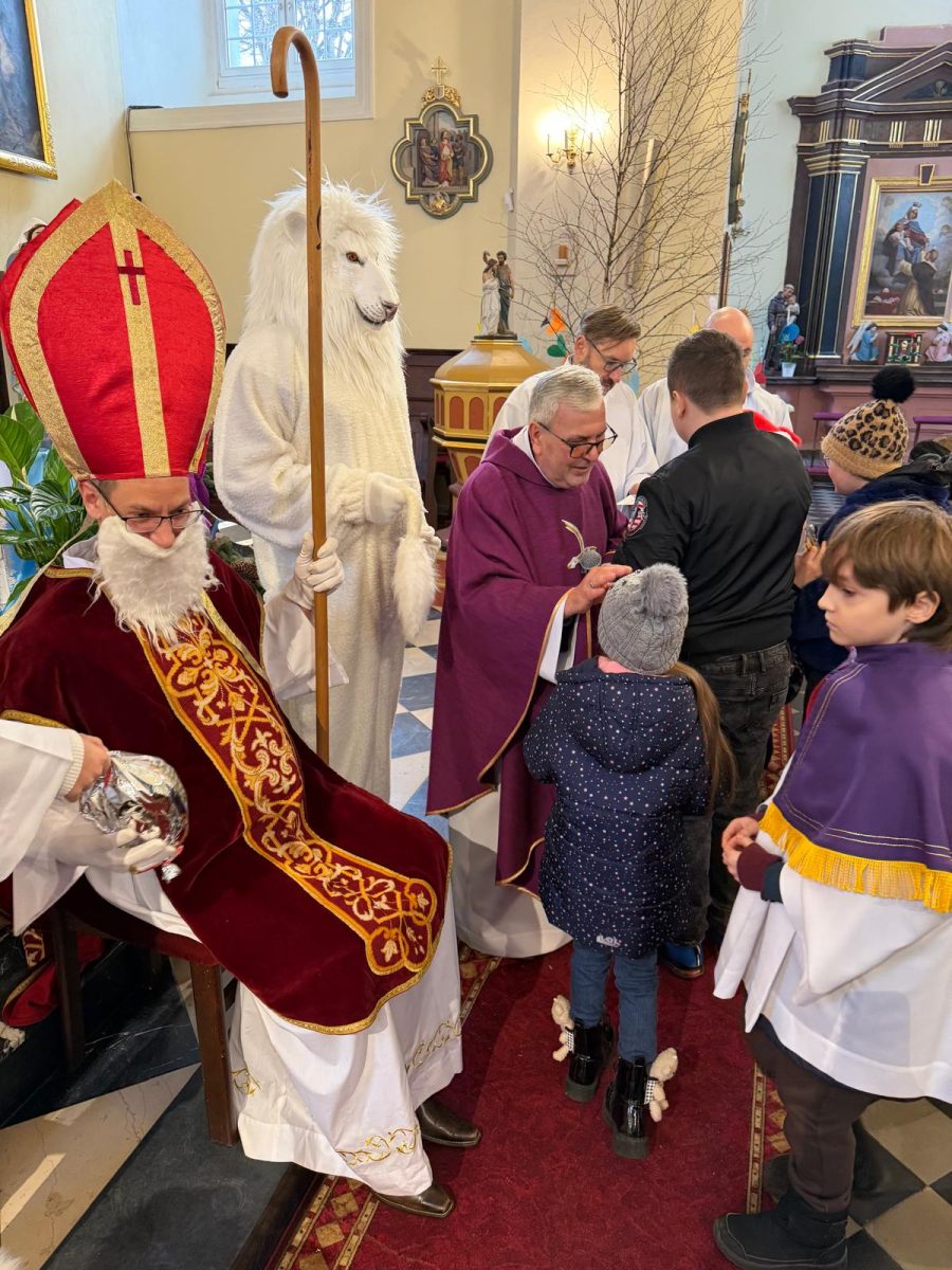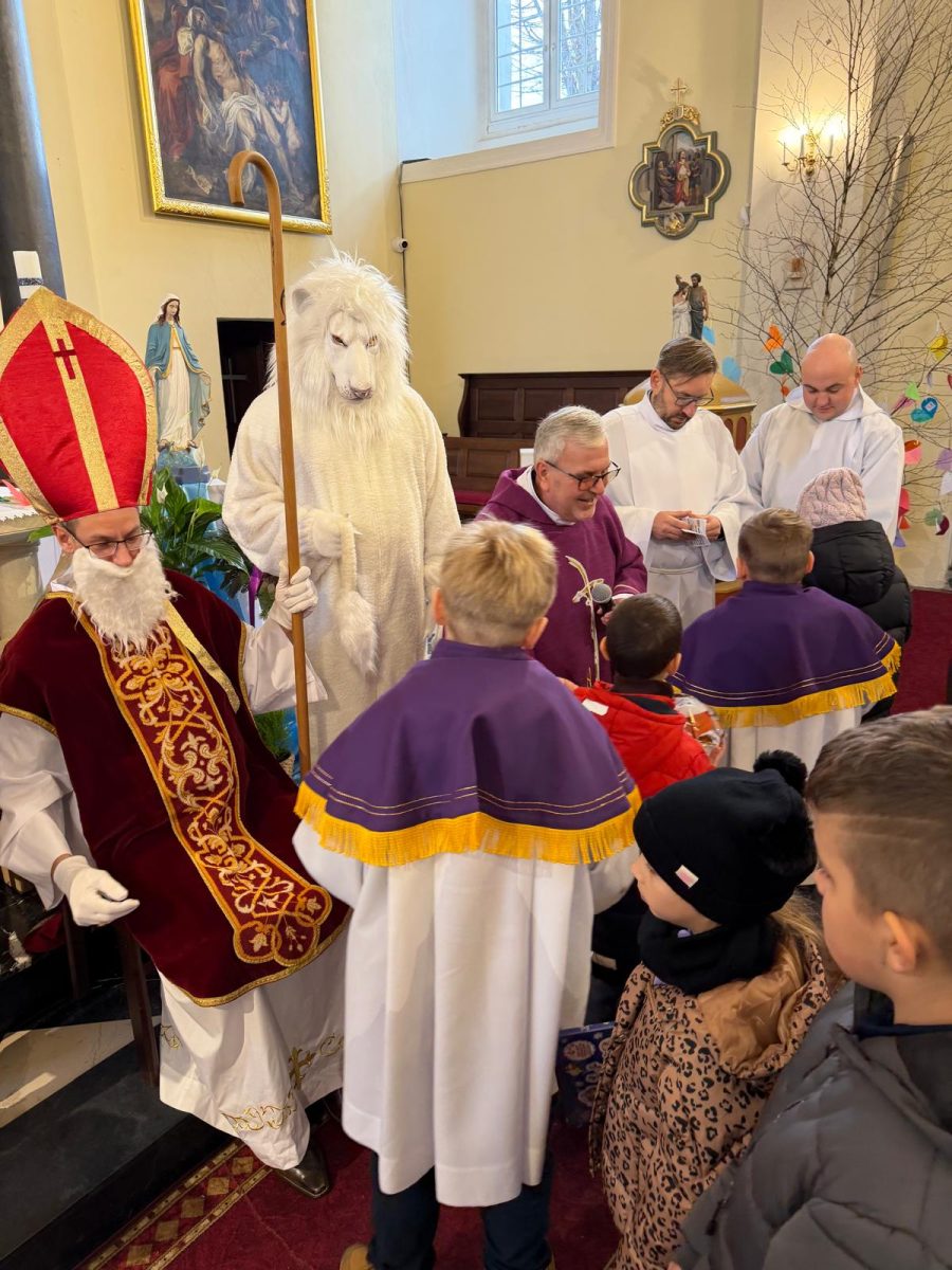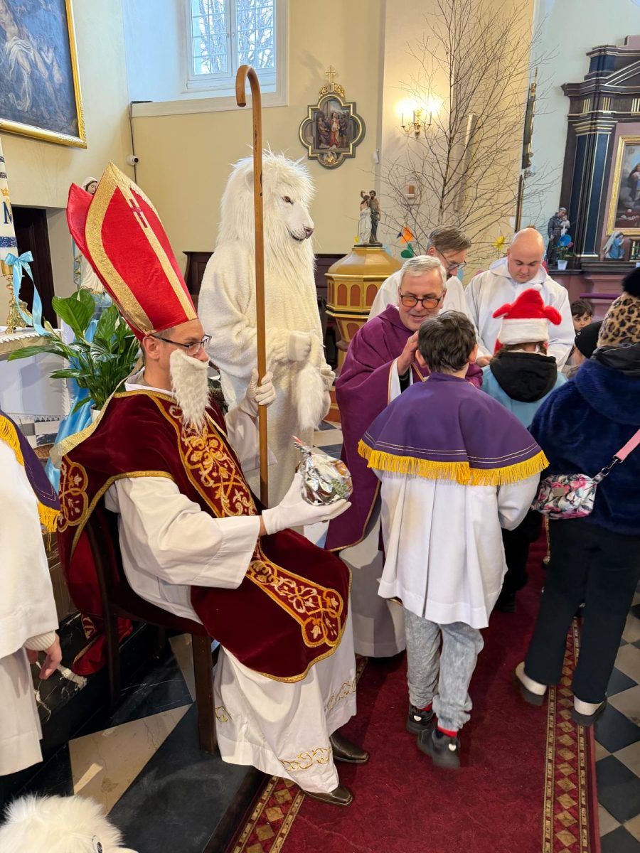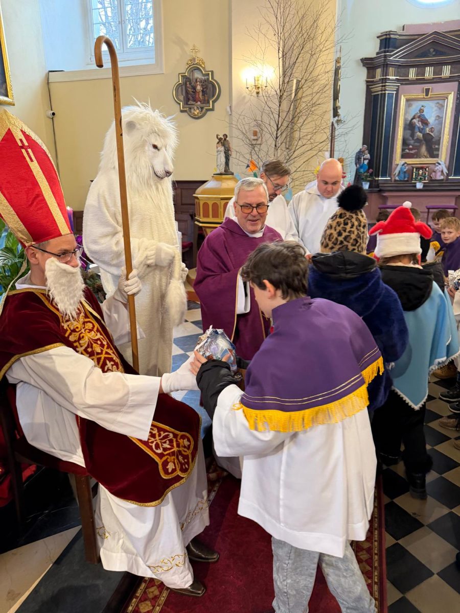 Podczas Mszy św. o godz. 10:00 odwiedzili nas Goście. Przyszedł Św. Mikołaj, a przyprowadził go Lew Leo, a był po niego z zaproszeniem do naszej parafii w Turcji. 07.12.2025 r.